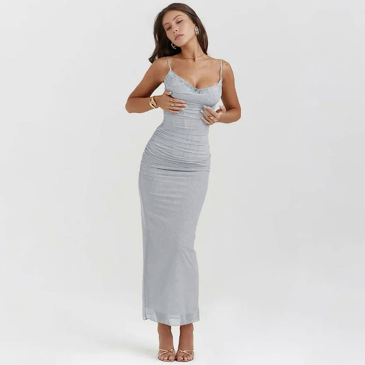 Rose Mesh Corset Maxi Dress – Spaghetti Strap Bodycon Elegant Formal Dress