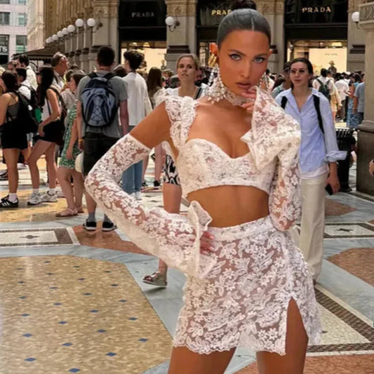 LACE WHITE HOLLOW OUT TOP and SKIRT SET