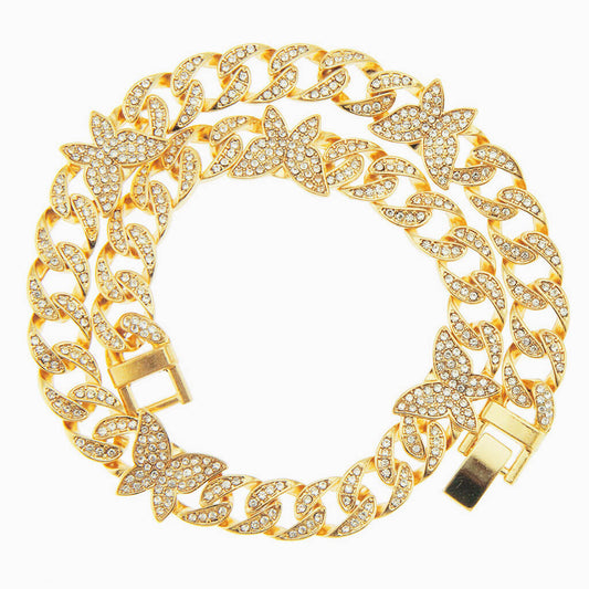 Eye Catching Paved Crystal Butterfly Station Cuban Link Chain Necklace