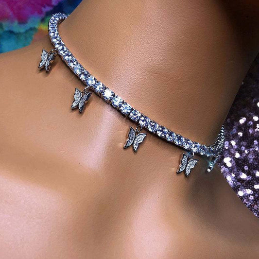 Sparkle Station Paved Butterfly Pendant Crystal Tennis Choker Necklace