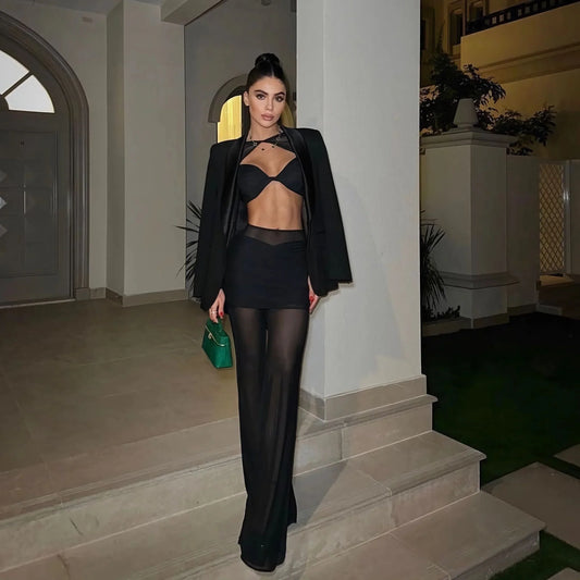HOLLOW OUT SET SPLITED MAXI SKIRT and ONE SHOULDER TOP