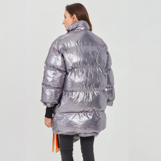 SILVER OVERSIZED PUFFER JACKET with IRREGULAR HEM