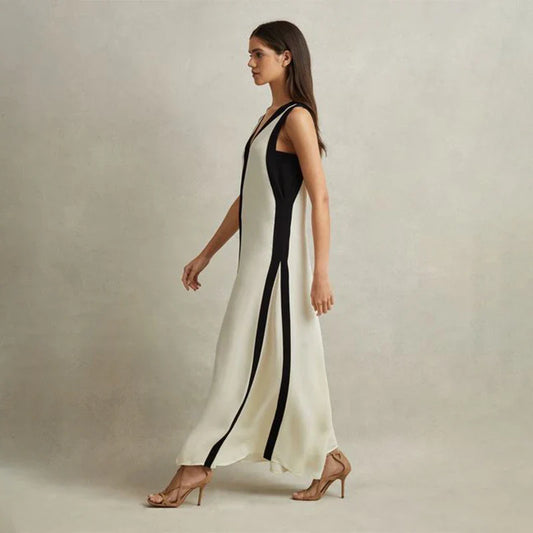 MAXI PUFF V NECK SLEEVELESS DRESS