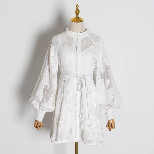 HOLLOW OUT LANTERN SLEEVE MINI DRESS
