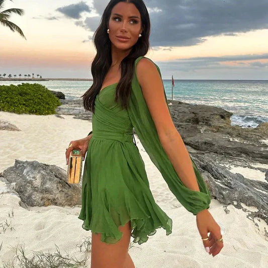 GRADIENT OFF SHOULDER MINI DRESS with TRAIN