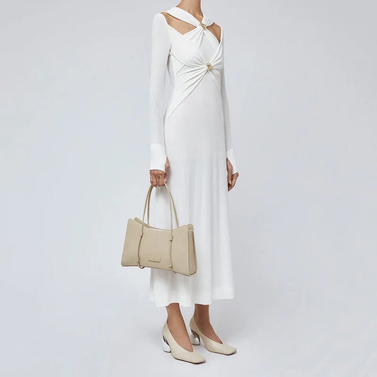 WHITE LONG SLEEE MAXI DRESS