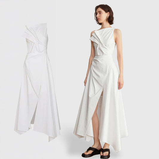 IRREGULAR MIDI DRESS with FRONT SLIT - White