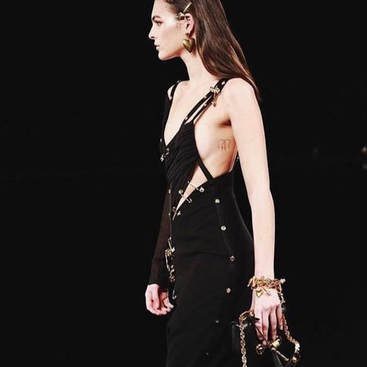 AYAME CLASP PIN HIGH SIDE SLIT MAXI DRESS