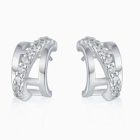 Half Paved 3MM Moissanite Sterling Silver Hinge Huggie Earrings