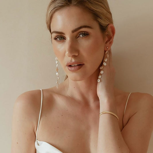 Wedding 18K Gold Plated Baroque Petal Pearl Cable Chain Drop Earrings