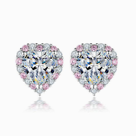 Pavé Cubic Zirconia Heart Shaped Halo Sterling Silver Jewelry Set