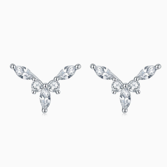 Quiet Luxury Cubic Zirconia Halo Cluster V Shaped Sterling Silver Jewelry Set