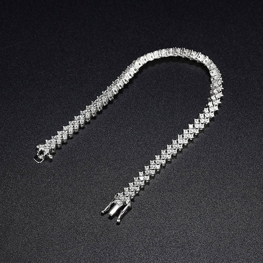 Iced Out Sterling Silver Triangle Cluster Moissanite Tennis Bracelet