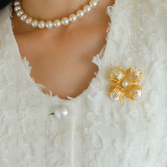 FOR YOU IN FULL BLOSSOM 18K Gold Plated Pearl Flower Bud Brooch