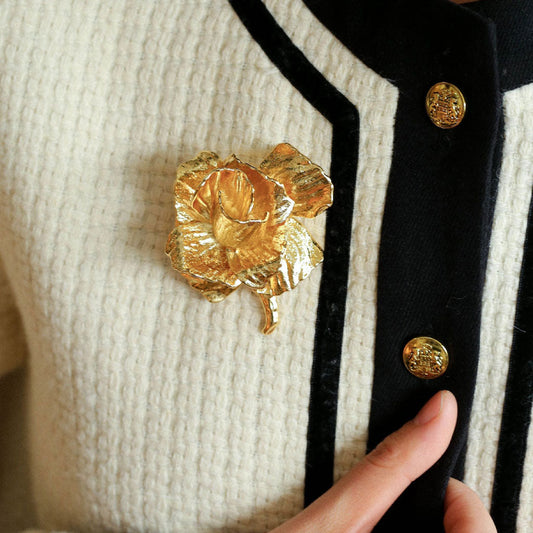 FOR YOU IN FULL BLOSSOM Glossy 18K Gold Plated Rose Flower Brooch