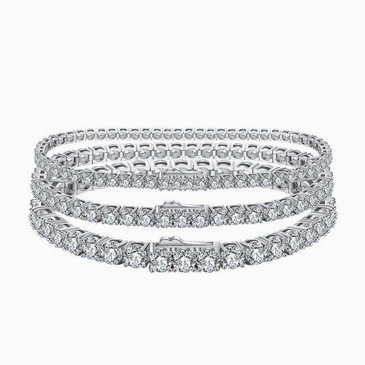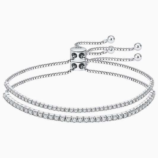 Iced Out Cubic Zirconia Sterling Silver Box Chain Slider Tennis Bracelet
