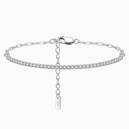 Iced Out Cubic Zirconia Sterling Silver Paperclip Link Half Tennis Bracelet