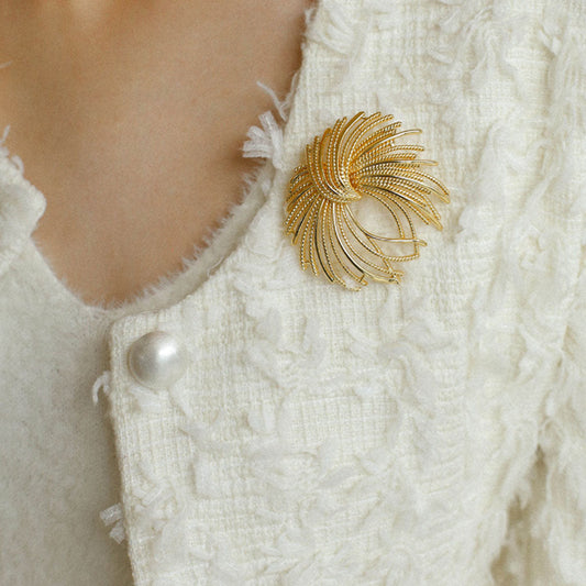 NEW AGE MAGIC Luxurious 18K Gold Plated Textured Fireworks Brooch
