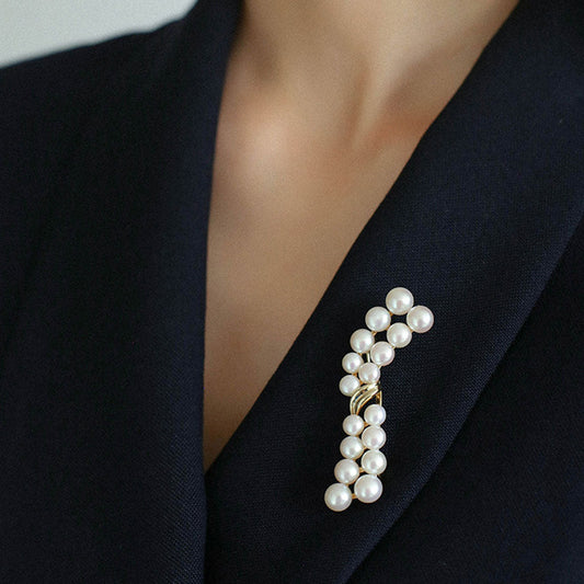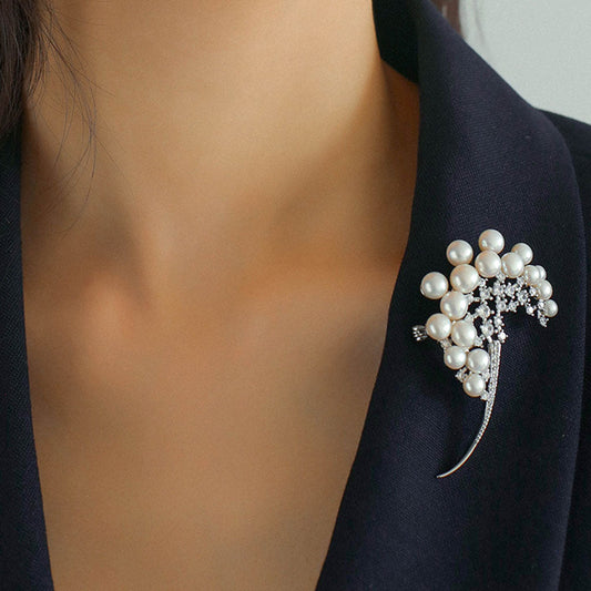 Opulent Rhodium Plated Cubic Zirconia Freshwater Pearl Bouquet Brooch