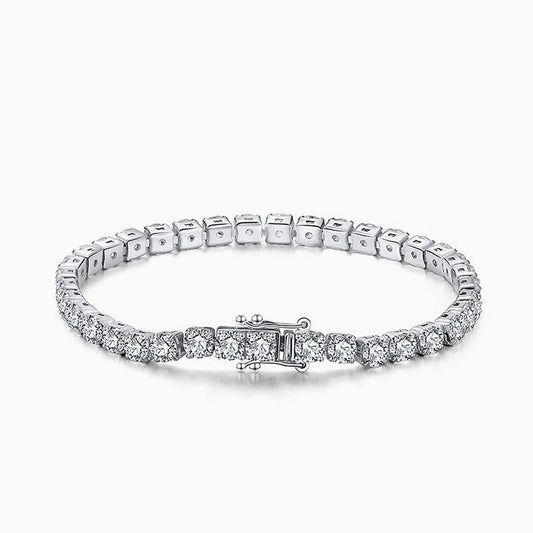 Iced Out Round Cubic Zirconia Sterling Silver Station Tennis Bracelet