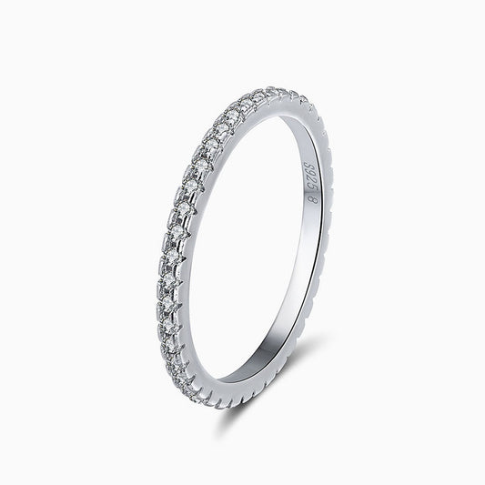 Iced Out Cubic Zirconia Pave Set Sterling Silver Eternity Band Ring