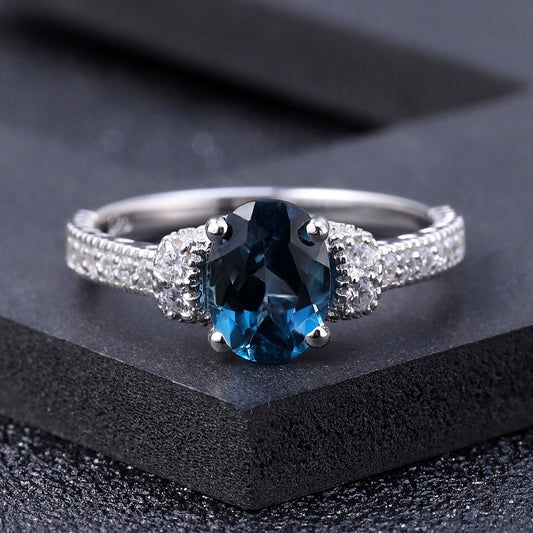 Opulent Clear Cubic Zirconia London Blue Topaz Halo Ring