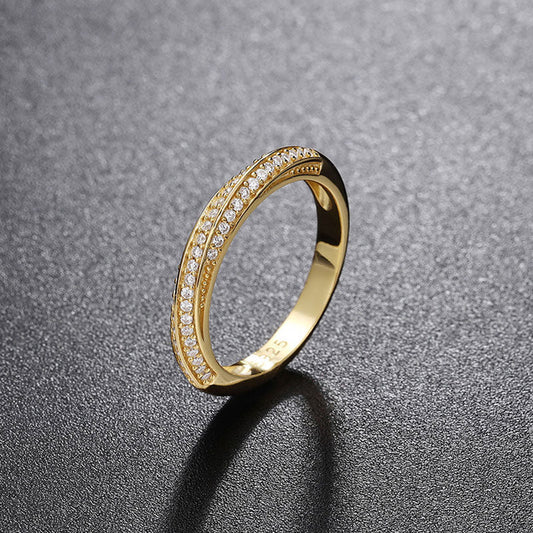 Sparkling 18K Gold Plated Paved Cubic Zirconia Square Cigar Band Ring