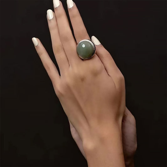 THE HOURS Quiet Luxury Oral Emerald Jade Rhodium Plated Band Ring