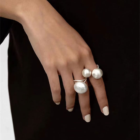 Personality Pearl Gemstone Beaded Layered Open Cuff Ring - Silver