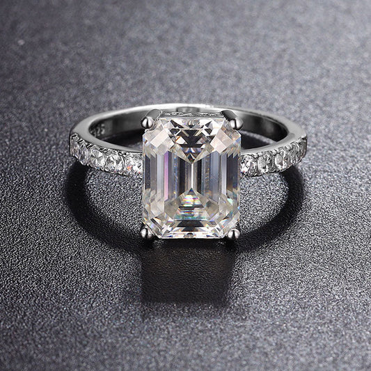 Rhodium Plated Sterling Silver Emerald Cut Moissanite Half Eternity Ring