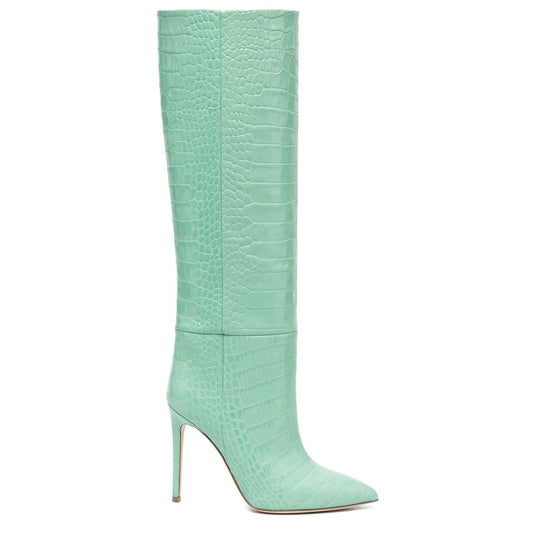 Classy Crocodile Effect Pointed Toe Knee High Stiletto Boots - Wasabi Green