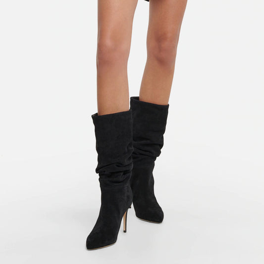 Slouchy Mid Calf Pointed Toe Stiletto Suede Boots - Black