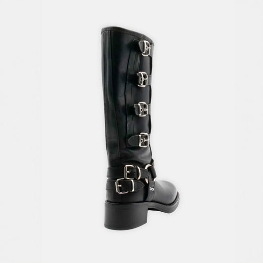 Sleek Square Toe Over Knee Chunky Low Heeled Boots - Black