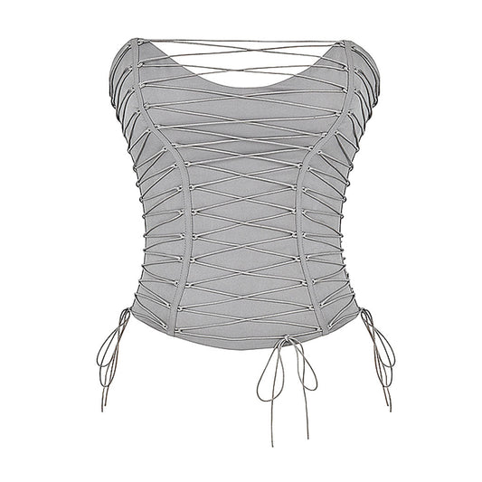 Sexy Solid Color Self Tie Lace Up Sweetheart Neck Strapless Crop Top