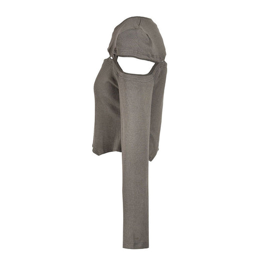 Deconstructed Crew Neck Split Trim Long Sleeve Rib Knit Asymmetric Crop Top