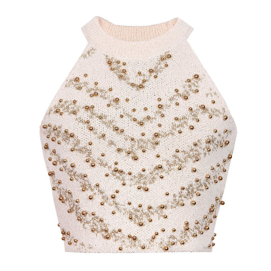 Opulent Imitation Pearl Beaded Suspender Strap Backless Crop Tank Top