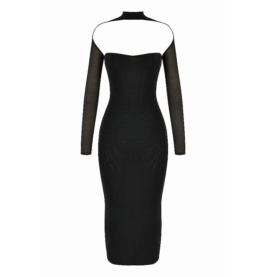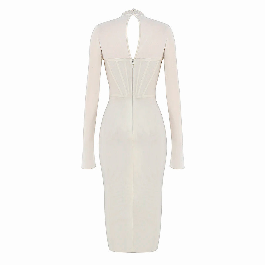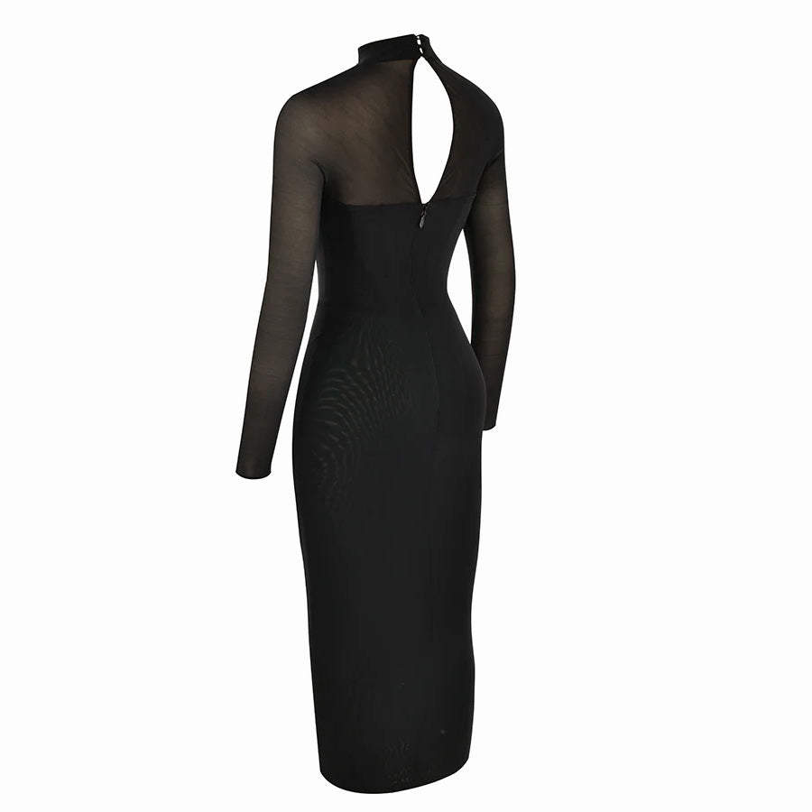 AIMI LONG SLEEVE HOLLOW OUT MIDI DRESS