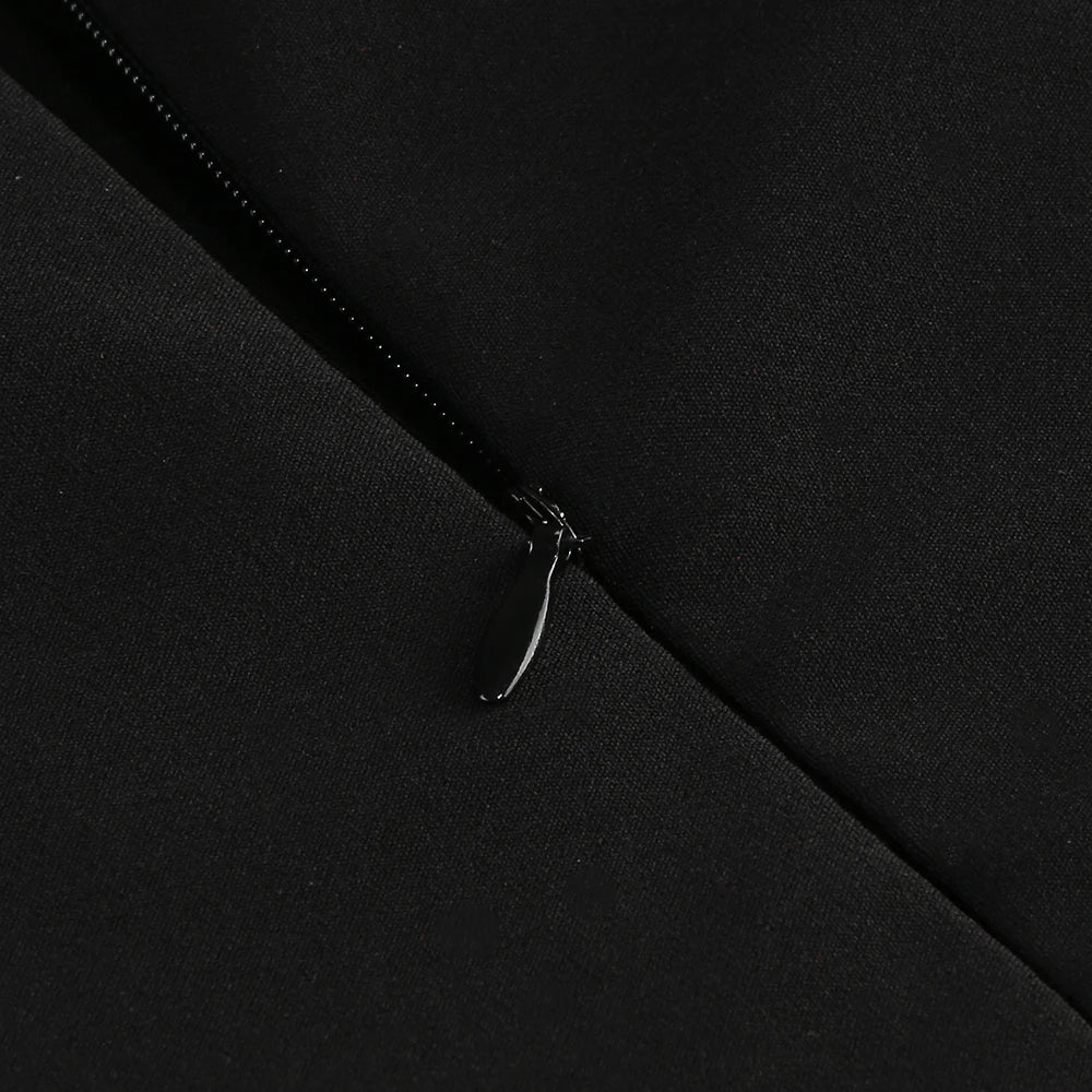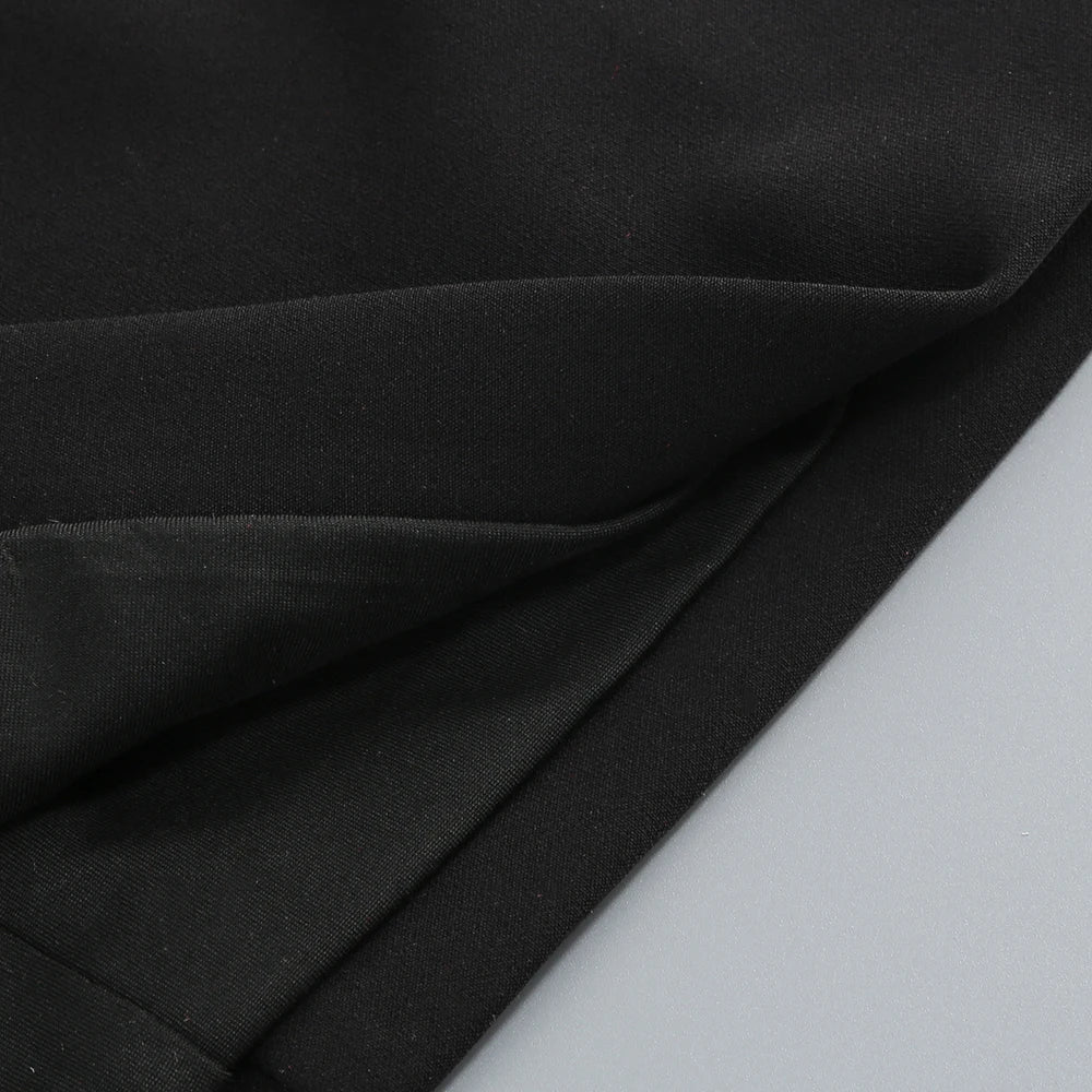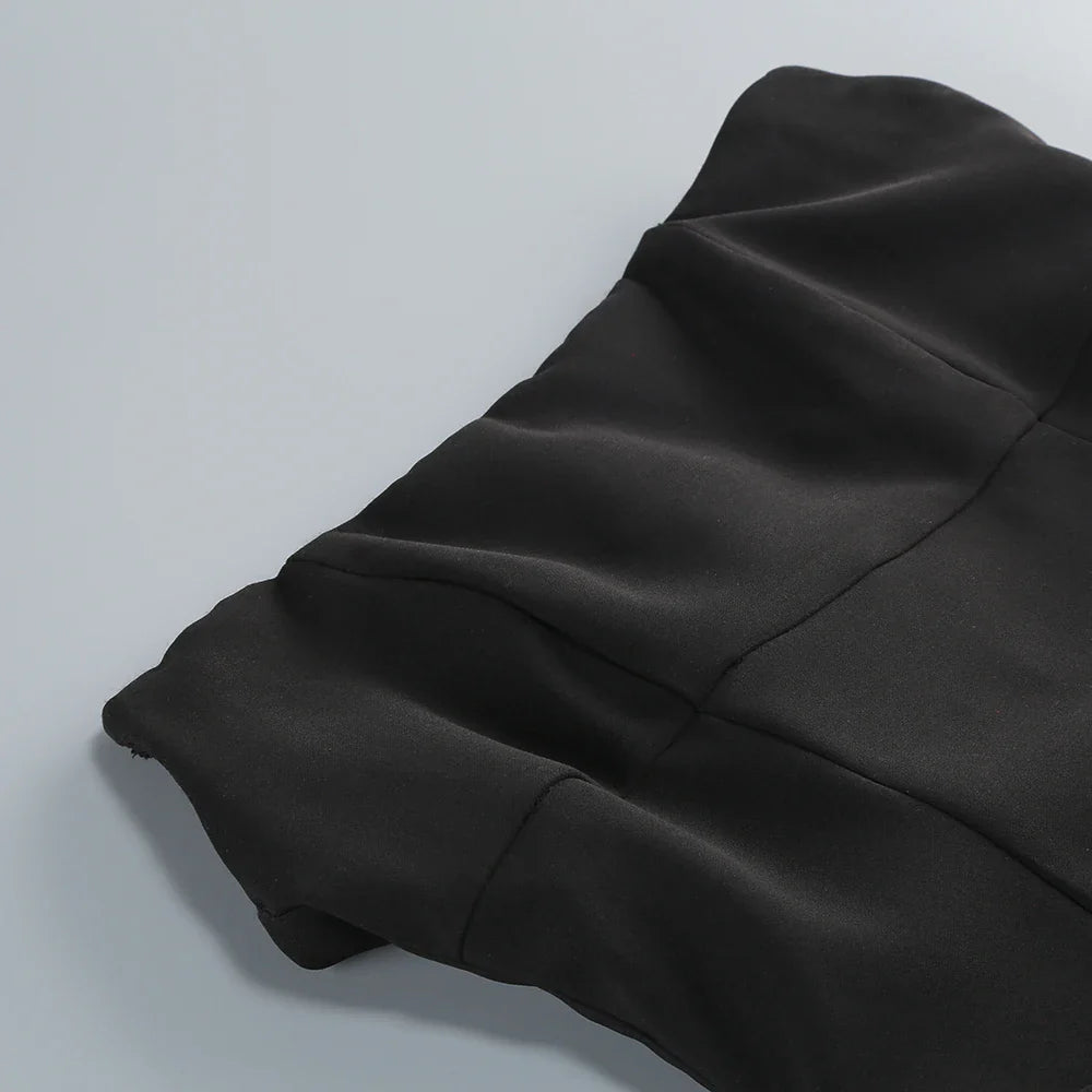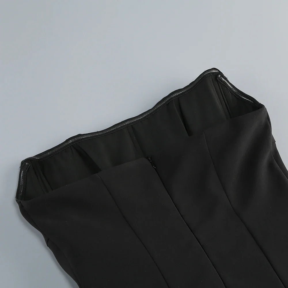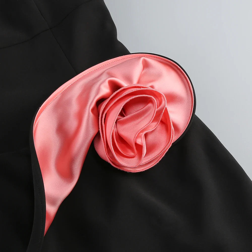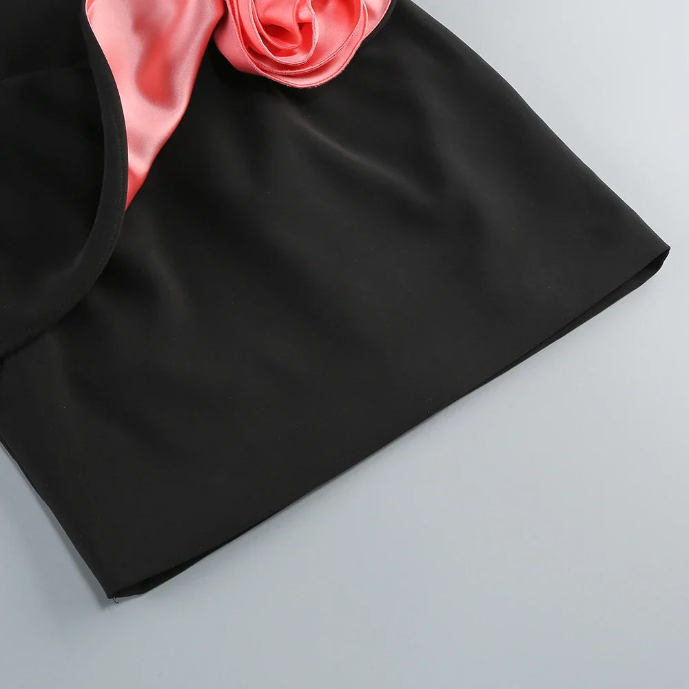 BLACK STRAPLESS MINI DRESS WAIST FLORAL DECORATION