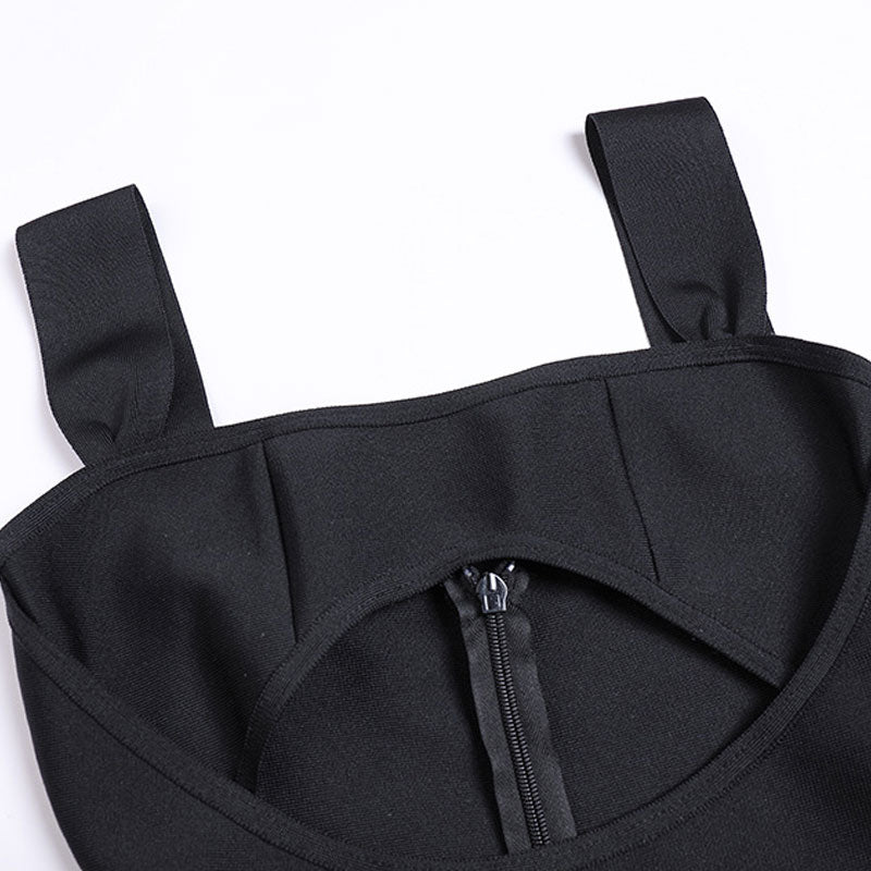 Sexy Cutout Square Neck Suspender Strap Straight Leg Bandage Jumpsuit