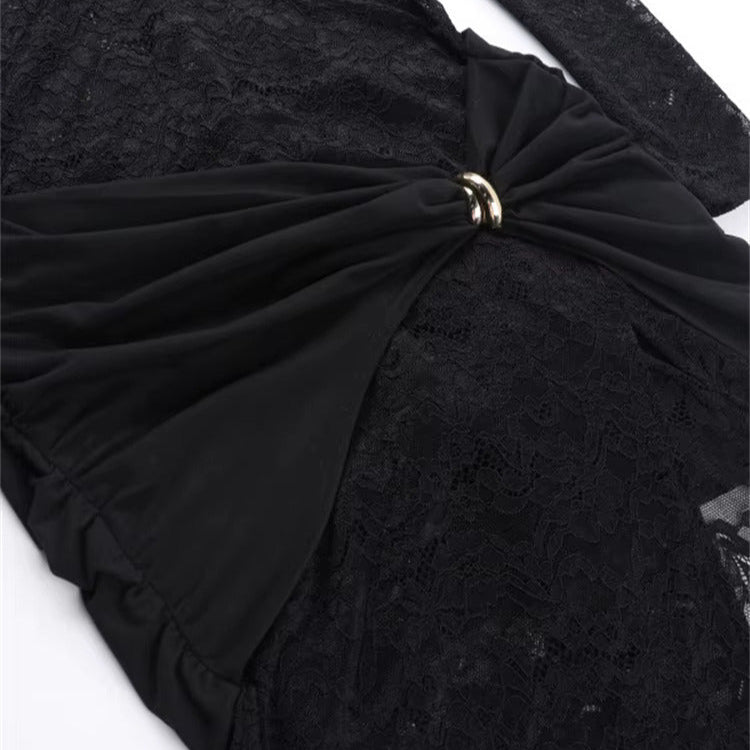 HOLLOW OUT HIGH SLIT LACE MAXI DRESS