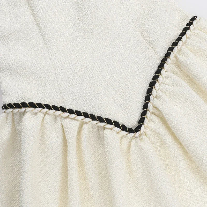PATCHWORK WHITE MINI DRESS RUFFLES SQUARE COLLAR