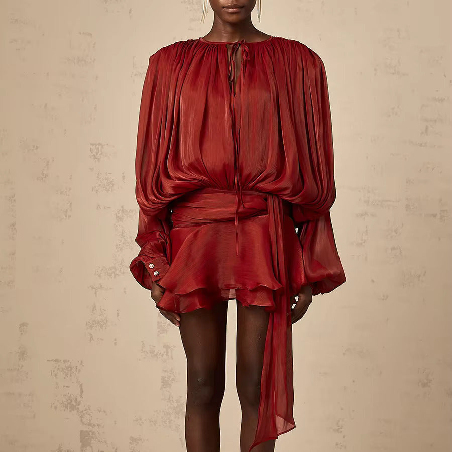 SOLID BLOUSE LONG SLEEVE MINI DRES