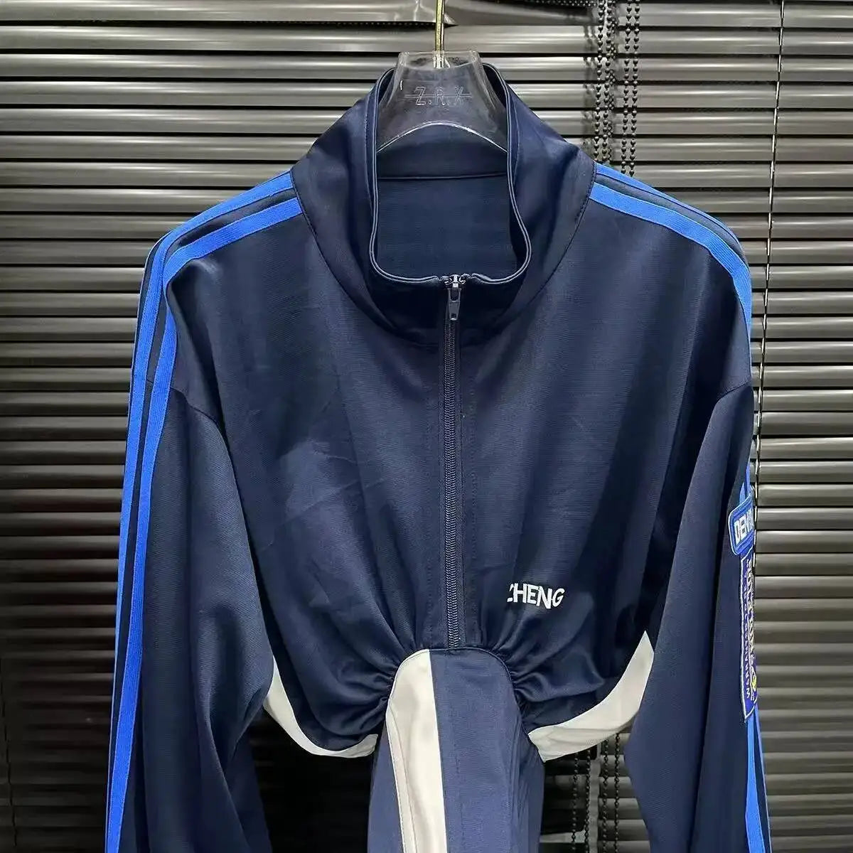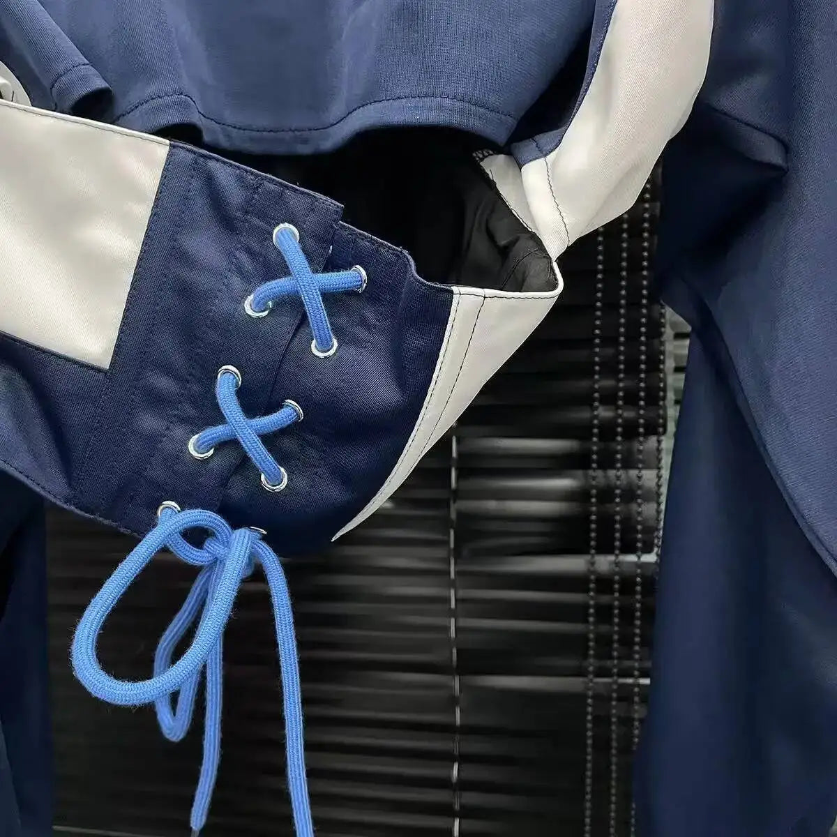 Elevate your streetwear look with this women’s long sleeve zipper shirt featuring a stand collar and corset lace-up waist. Designed with a slim fit silhouette, bandage detail, and lightweight breathable fabric, this trendy jacket is perfect for layering in any season. Available in blue, white, and red – a must-have fashion piece for statement outfits.
