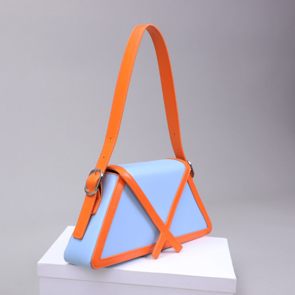 Accent with its geometric shape with contrast piping detailing, this luxury shoulder bag finishes a unique sophisticated look. It also features a fold-over flap top with a hidden magnetic fastening, an adjustable shoulder strap, and cut from PU leather fabric. Pair it with your favorite essentials for a chic look. Our designer bags collection also brings out a range of shoulder bags for women. Keep scrolling for the best styles.